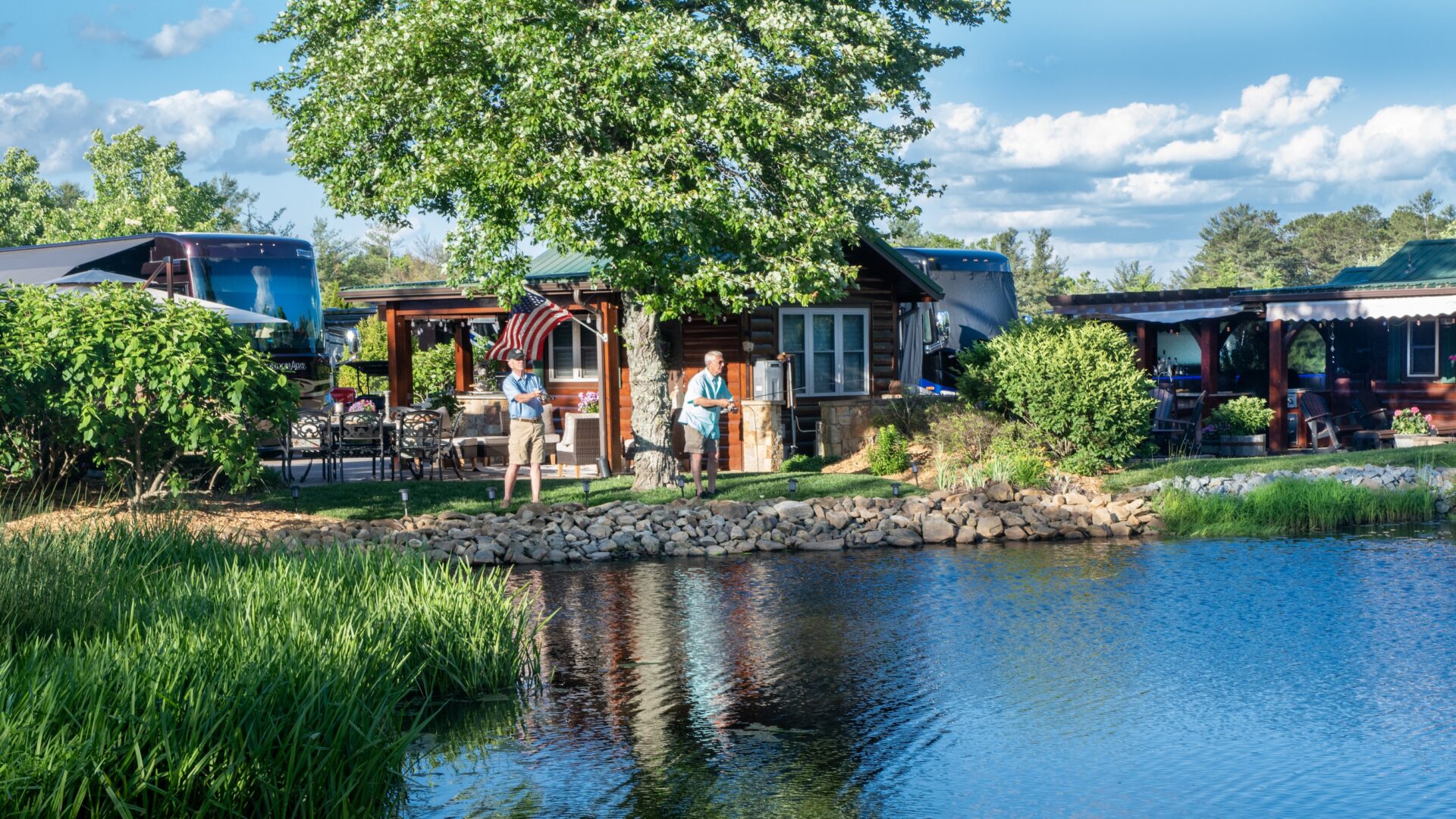 Whether you’re a bass master or a wannabe bass master, our fully stocked fishing pond is steps away. So, pack your light tackle and be sure to include a few spinner baits because there’s a monster down there just waiting to strike something shiny. If you’re an avid angler who wants to catch the dawn bite, choose a site overlooking the Deer Creek Pond, so you can rise, shine and cast away. Catch and release only please. The fish help keep our pond healthy.